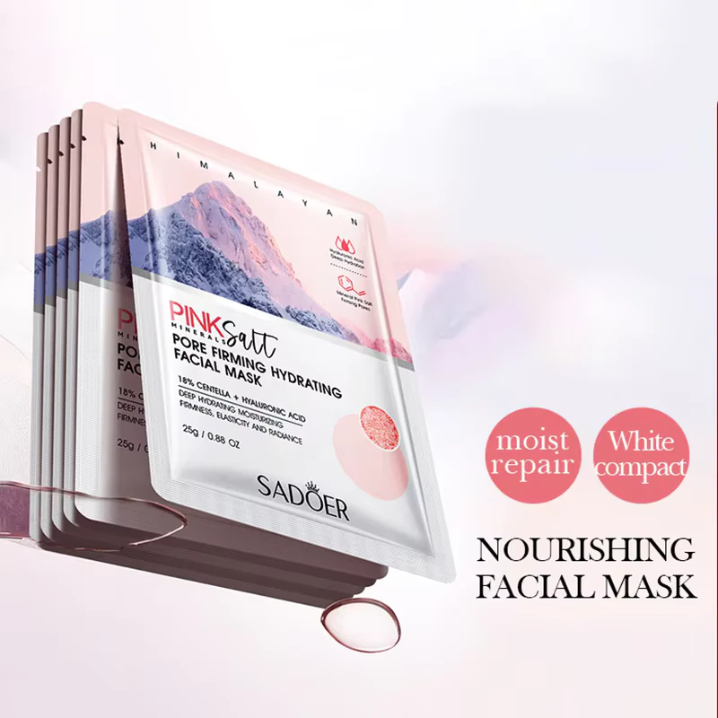 SADOER Himalayan Pink Salt Face Sheet Mask is a hydrating sheet mask designed to refine pores, improve skin texture, and restore a healthy-looking glow. Infused with Himalayan pink salt extract, hyaluronic acid, and Centella asiatica, this essence-rich mask delivers moisture while helping support smoother, firmer, and more balanced skin.